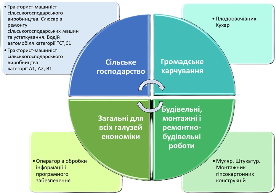 Ліцей здійснює підготовку кваліфікованих робітників за напрямами: